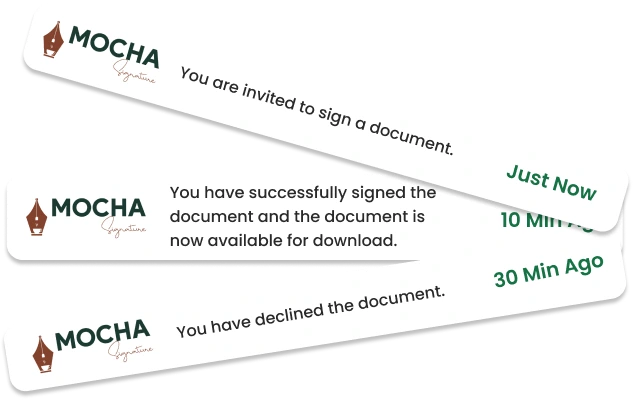 Enhance efficiency with Mocha Signature's automated reminders and notifications, ensuring timely document completion and real-time updates. Never miss a thing, making the entire signing process smoother, faster and more efficient for all parties involved.